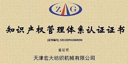 2019-01-162018年12月28日,天津宏大紡織機(jī)械有限公司收到由“中規(guī)(北京)認(rèn)證有限公司”頒發(fā)的《知識產(chǎn)權(quán)管理體系認(rèn)證證書》,順利通過《企業(yè)知識產(chǎn)權(quán)管理規(guī)范》(GB/T29490-2013)國家標(biāo)準(zhǔn)知識產(chǎn)權(quán)管理體系的認(rèn)證。...
